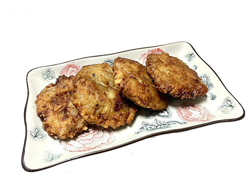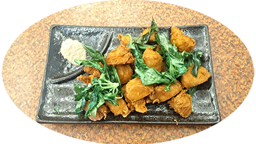 G丁下油鍋搶酥才能Q彈有嚼勁,佐上九層塔提味與白胡椒鹽,香酥可口。