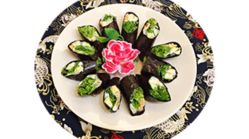 由紫菜(海苔)包裹著各種新鮮蔬菜和沙拉醬製成。